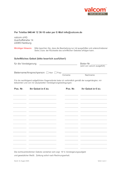 Bankbestätigung, Schriftliches Gebot und Gelangensbestätigung