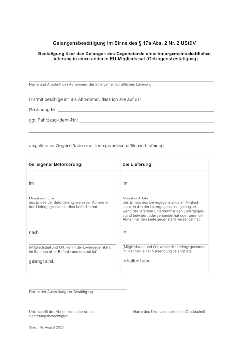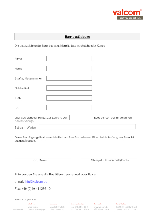 Bankbestätigung, Schriftliches Gebot und Gelangensbestätigung